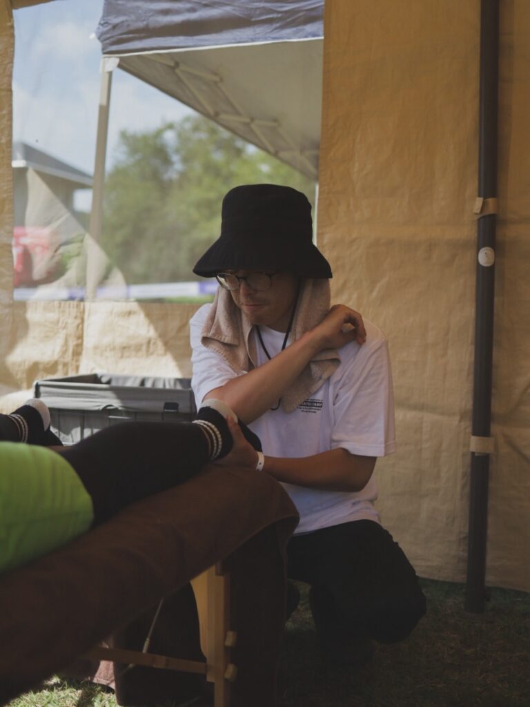 ラブシャだけでなく、ARABAKI ROCK FESなどの大きいイベントから地域のイベントまで幅広く出店されており、『指圧師をカッコいいと思われる職業に!』というコンセプトで活動なさっています。