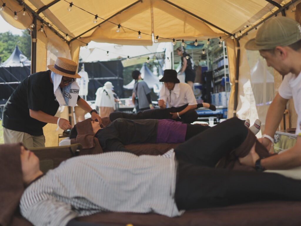 元々、音楽やライブが好きで、野外音楽フェスにはよく遊びに行っていたのですが、ROCK in JAPANやJAPANJAM、COUNT DOWN JAPANなどの大規模音楽フェスにはマッサージブースの出店があるんです。