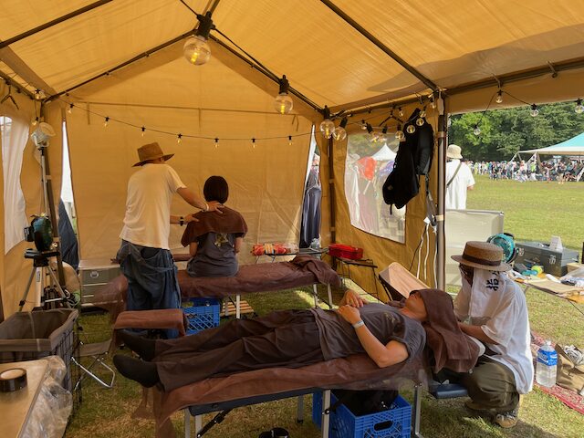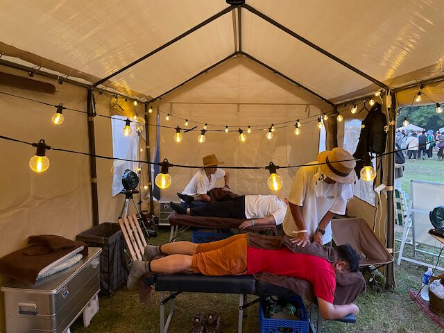 メインのSHIATSU CAMPさんは前日準備から入り、3日間指圧し続け、最終日は撤収作業もあり、帰宅は深夜だったそう。僕は29〜30と二日間だけのお手伝いでしたが、それでも結構体力勝負。