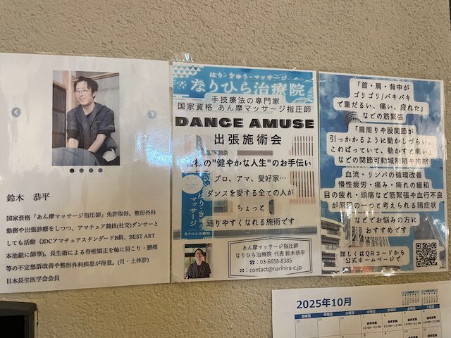 10/25(土)はいつもお世話になっている大阪のダンスアミューズさんへ出張施術。