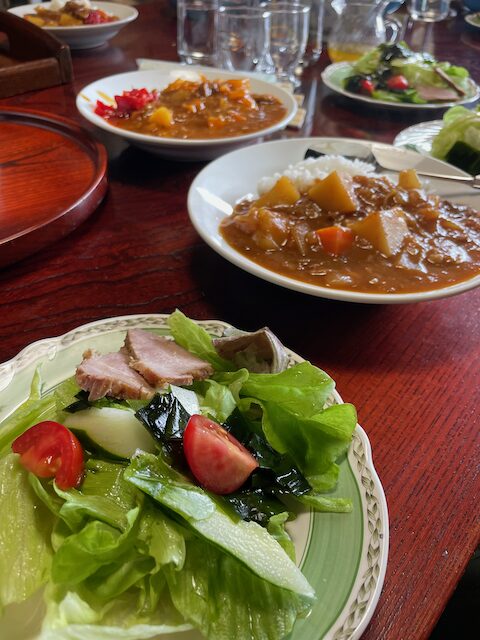 会場を提供してくださった福山の高橋先生の奥様お手製のサラダとカレー。美味しかったぁ。